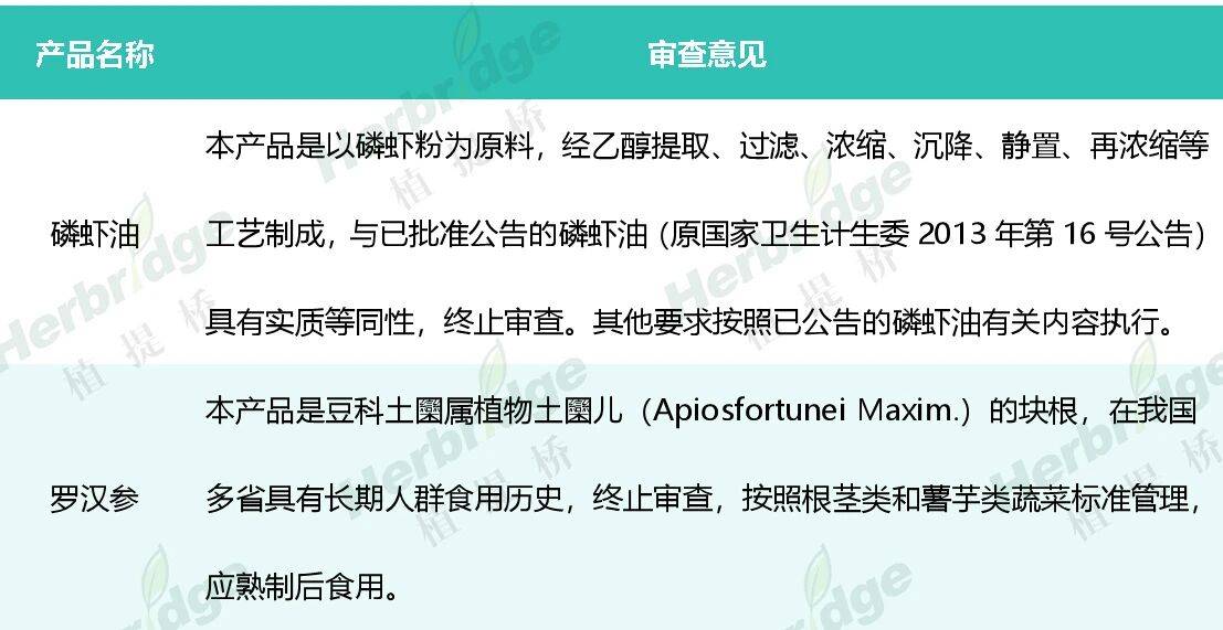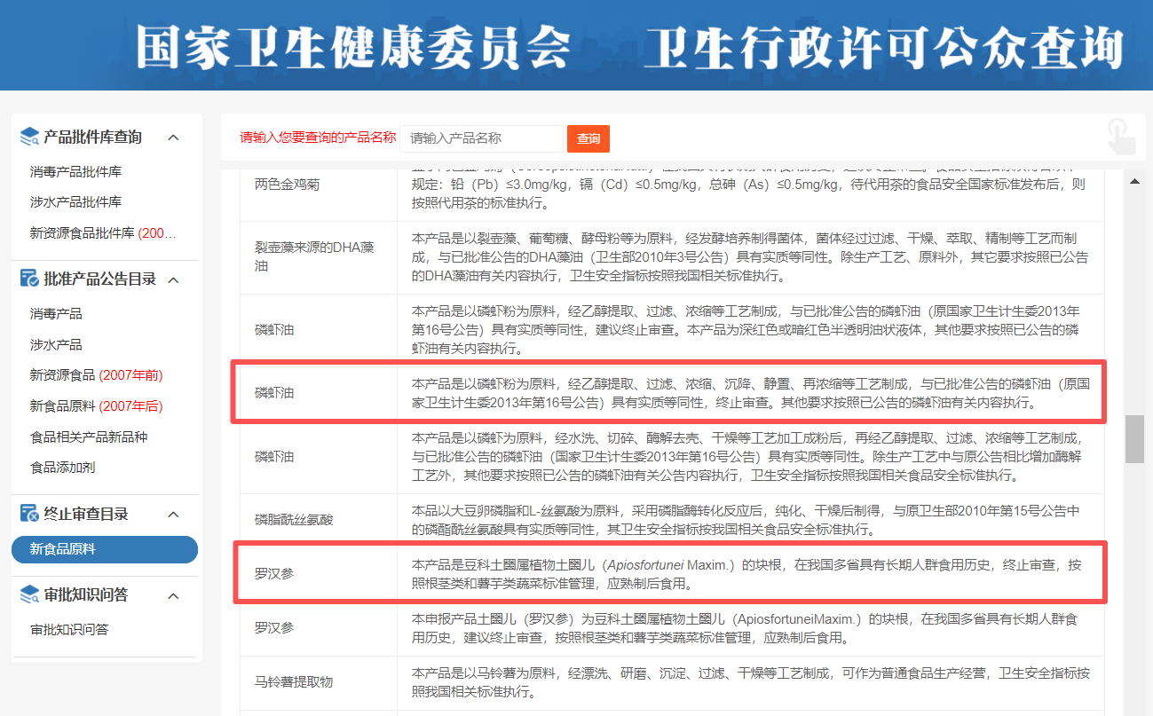 据植提桥了解,此次终止审查的磷虾油和罗汉参分别是2025年、2024年申报,新食品原料审批程序严谨,而“终止审查”制度可以说是一种高效审评通道。