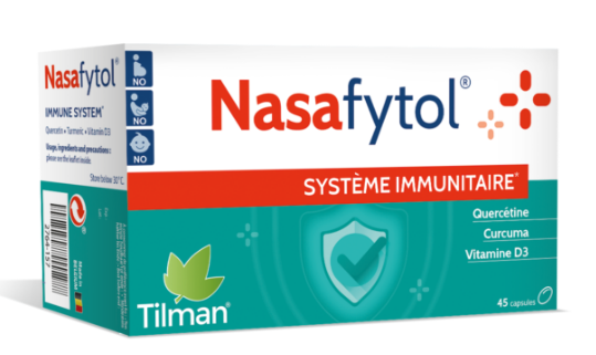 Nasafytol产品配方主要有姜黄提取物、维生素D、槲皮素(槐花来源),产品剂型为胶囊,使用的是天然色素叶绿素。