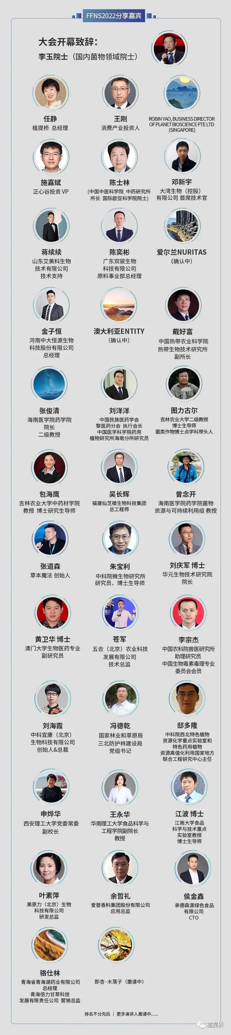 FFNS2022未来营养素峰会又增演讲人啦