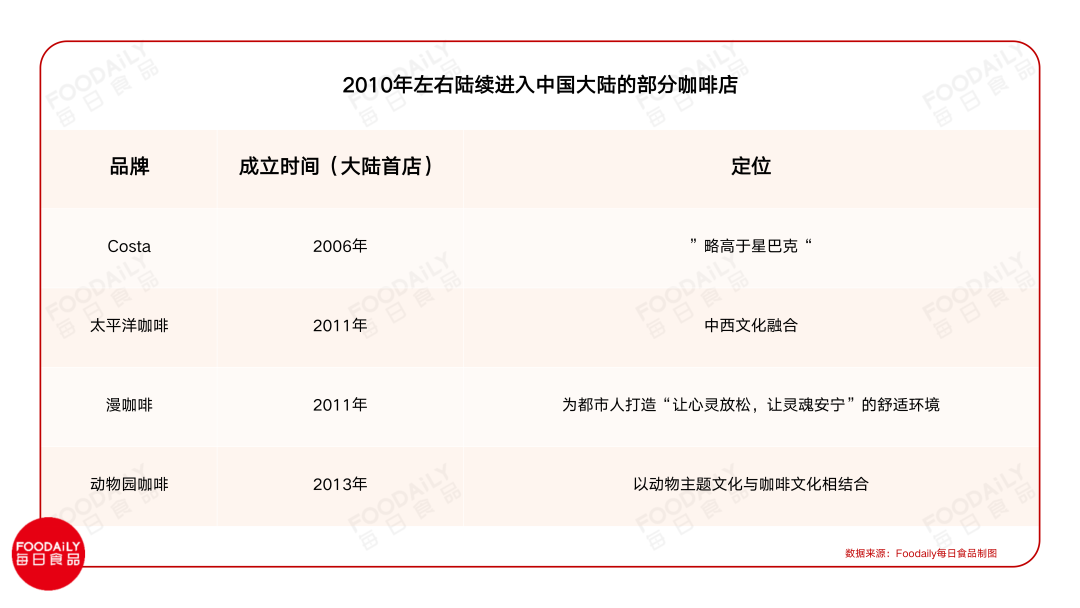 第一篇,咖啡在中国市场垦荒,从无到有其实更多是先思考的是如何制造消费需求,让更多人知道了咖啡这个新物种。 速溶咖啡主打的饮品创新——美味好喝;而咖啡馆最终出圈的是精致生活方式的体验感,星巴克是在连续亏损9年后,2010年才决定了这个高端定位。 即便如此,在过往长达20多年中,雀巢、星巴克们还是对消费者进行了足够多的市场开化教育。 于是在2010年前后,涌现了一批外资和本土咖啡品牌。以线下门店为例,Costa、太平洋咖啡、漫咖啡、动物园咖啡等均在这个时期进入大陆;从2010年开始,全家、711、罗森等便利店也卖起了现磨咖啡。 不过,这一阶段主要还是较为传统的连锁咖啡品牌在进入,是中国咖啡市场较大规模的一次扩容。 无论从是否会打破星巴克和雀巢的领头羊地位,还是咖啡消费需求的进一步提升,Foodaily认为,2014-2015年是一个关键的转折点。从此刻开始直到2019年之前会是咖啡消费场景上的多元化延伸,以及咖啡高品质品鉴有了大众化的开端,但这一阶段其实无关产品本身的创新。 来源:搜狐 回头来看,本质上是因为中国“新物种”-数字化的出现为经济领域转型提升提供新的思路与路径。所以我们也会发现,从2014-2019年之间,线下咖啡形态热度最为高涨。 01 移动互联网蓬勃发展,催生互联网咖啡新品牌 中国的数字化转型浪潮从2014年开始爆发。直至2015年,数字经济在中国总GDP中超过了30% 的占比,大数据、云计算、智能手机、O2O、全渠道经营、到家服务等新兴产业层出不穷。 2016年,随着新一轮信息技术革命的爆发,制造业、消费等领域都在发生“数字蝶变”...... 数字经济为经济领域转型提升提供新的思路与路径。所形成的数字化浪潮给中国的制造业、消费等领域带来了变化,网上购物、共享单车、网络支付、电子商务等新兴领域快速重构着中国人生活的方式,从而形成了日常生活中的数字化浪潮。 直至2017年,中国成为了全球最大的移动互联网市场,并且网民总规模达到了近7.3亿人,在其中使用手机上网的比例达到了96%。因此,用户需求的巨大网络效应带来了一系列的市场创新。 咖啡市场也不例外。 1、强调外卖和配送 随着移动互联网和手机支付的兴起,线上外卖市场在2014年真正爆发,大众点评、美团、百度等都推出了自己的外卖服务,饿了么获得大众点评等8000万美元注资...... 这一年,互联网咖啡品牌连咖啡成立,看重的便是外卖的出现能够解决传统的现磨咖啡门店模式的经营半径受限、供给侧能力不足、履约困难、管理困难等痛点;同时很大程度上能够满足消费者想随时随地饮用高品质现磨咖啡的需求。 于是其一开始以提供星巴克、Costa等咖啡外送服务积累用户,2015年逐渐剥离咖啡外送服务,转向自创品牌Coffee Box的咖啡外卖,但其在截至2016年4月就已经积累了80多万用户。 2、开拓咖啡新模式,“新物种”冲击星巴克地位 那要说这一阶段的咖啡市场,不得不提的便是瑞幸咖啡。2017年,在国外品牌星巴克垄断的中国现磨咖啡市场中,汤唯和张震手中咖啡上的一抹来自中国的蓝色,开始进入大众的视野。 来源:搜狐 当时中国现磨咖啡市场的痛点在于: 第一,高品质现磨咖啡价格高,从而限制了购买频率(根据沙利文的调查分析,在2017年,只有26%的中国消费者愿意接受30元以上的咖啡); 第二,由于咖啡店的门店不普及,现磨咖啡的购买缺乏便利性。且传统的咖啡市场主要依靠线下实体门店进行销售和服务,因此,门店的咖啡销售会局限于门店的地理位置,并且会出现排队时间长等购买不方便的痛点。 瑞幸运用“线上+线下”融合的互联网新零售商业模式巧妙地打破单一的门店经营模式的痛点。 一方面,瑞幸通过移动应用实现了线上下单与移动支付,消费者在线上下单后,可以选择到店自取,在这过程中不需要进行点单与收营排队,很大程度上节省了时间。 同时在城市的商业区和写字楼附近开设了大量线下门店,其中91%的门店属于快取店,主要满足于外带需求;但也设有优享店,提供就座休息空间。 来源:财经头条 另一方面,瑞幸也抓住了外卖的机会,在2018年相继与美团外卖和饿了么进行合作以补充外卖配送服务能力,让每一家瑞幸门店的服务半径达到了2km。 开篇提到,其实2010年起就有多个线下品牌进入中国大陆或本土品牌成立,但这些品牌并没有一个独特的定位区分于星巴克,始终也没有能打破星巴克的垄断的地位。 瑞幸的出现可能给星巴克带了“实质性的威胁”,瑞幸咖啡仅仅用了18个月的时间就在纳斯达克上市,且2019年7月全国门店数量近3000家,到2020年1月瑞幸咖啡在国内的门店数达4910家,超过了星巴克。 当然之后瑞幸被浑水做空,陷入“财务造假”的谷底。不过其留下的数字化运营模式,确是为后来的再次崛起奠定了基础。 瑞幸的数字化运用不光体现在线上线下融合的零售模式,其还通过打通客户端、门店端与供应端的数据,在运营过程中更好地优化供应链、提高效率。同时分析消费者的购买模式、热门产品、地域偏好等,以便更精准地满足消费者需求。 3、数字化运营,成为核心破局变因 星巴克其实并没有落下数字化步伐,早在2016年就提出了“数字飞轮(Digital flywheel)”的数字化战略,具体是将星巴克的四大模块:会员体系、移动支付、个性化体验和移动端购买体验,形成一个增强型的循环效应。 来源:百度 瑞幸咖啡的出现,进一步推