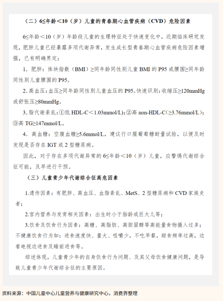 例如儿童时期的肥胖问题不仅将直接影响成年后身体发育,据儿童中心数据,学龄期儿童肥胖转变为成人肥胖的危险度是非肥胖儿的3.9——5.6倍,大约有42%——63%的学龄肥胖儿童转变为肥胖成人;还将带来成年后脂肪肝、糖尿病、冠心病等慢性疾病风险值增高等诸多问题。