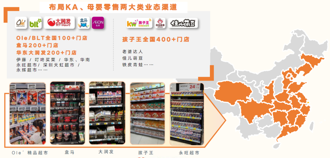 并以品牌力+线上客流量黏性向线下引流,渗透进OLE、盒马、大润发、永旺、天虹、永辉、伊藤等线下商超渠道,并加大对孩子王老婆大人等专业母婴、零食连锁渠道,以及儿童亲子餐厅空间的占领,通过“打造头部精品KV渠道+母婴及本地连锁拓宽渗透”策略提高线下零售终端影响力与渗透率,获得更大增量。