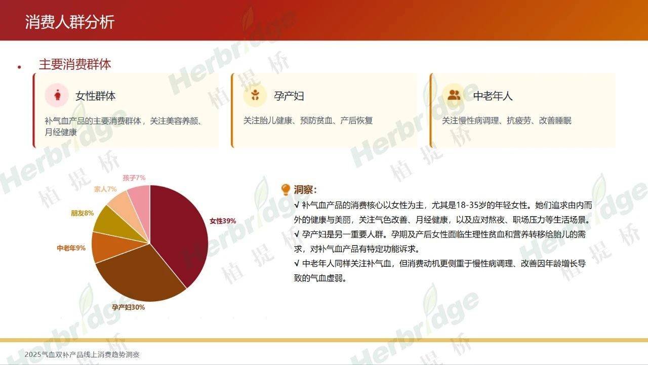 消费人群以女性为主,占比39%;孕产妇占30%,中老年人占9%,Z世代正成为新增长点。