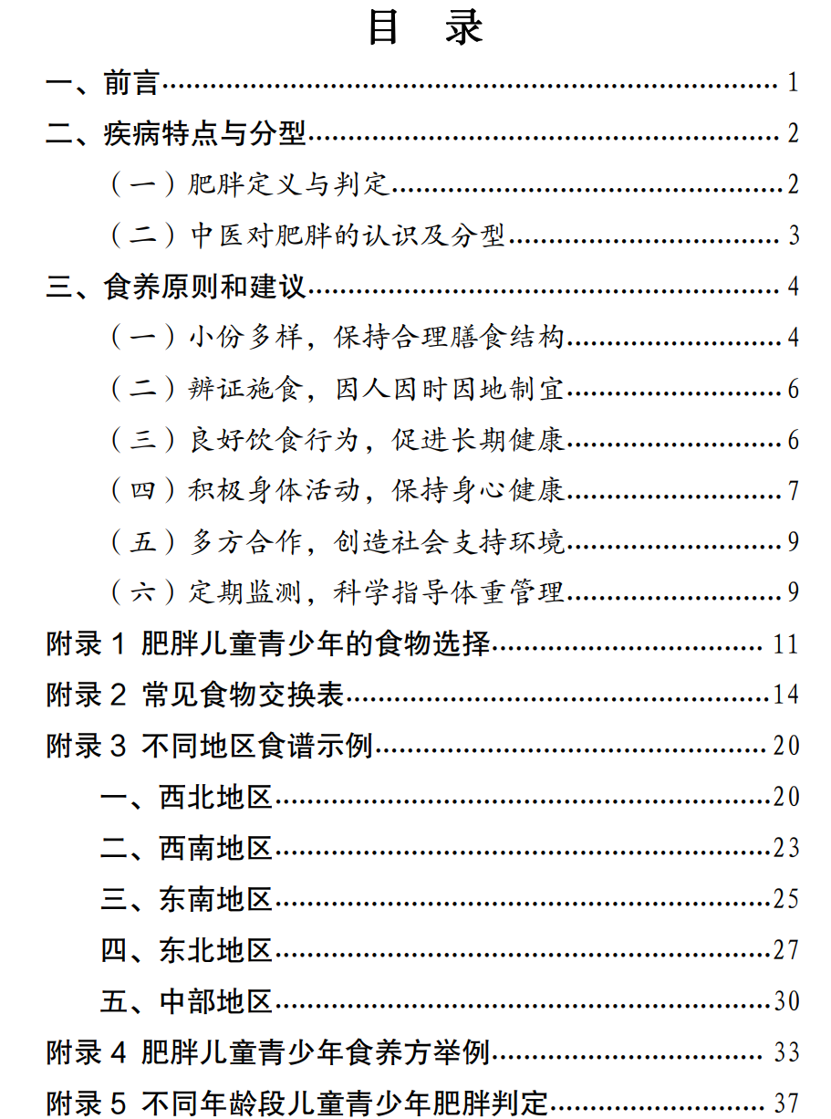 图:儿童青少年肥胖食养指南(征求意见稿)目录