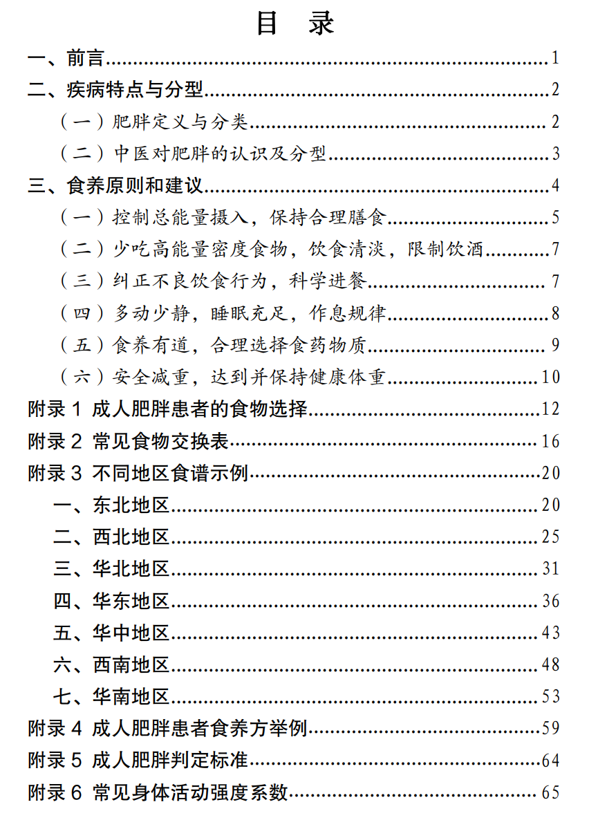 图:成人肥胖食养指南(征求意见稿)目录