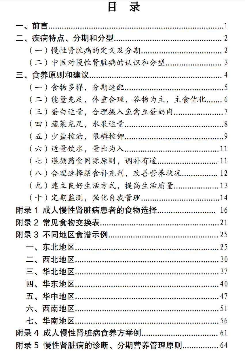 图:成人慢性肾脏病食养指南(征求意见稿)目录