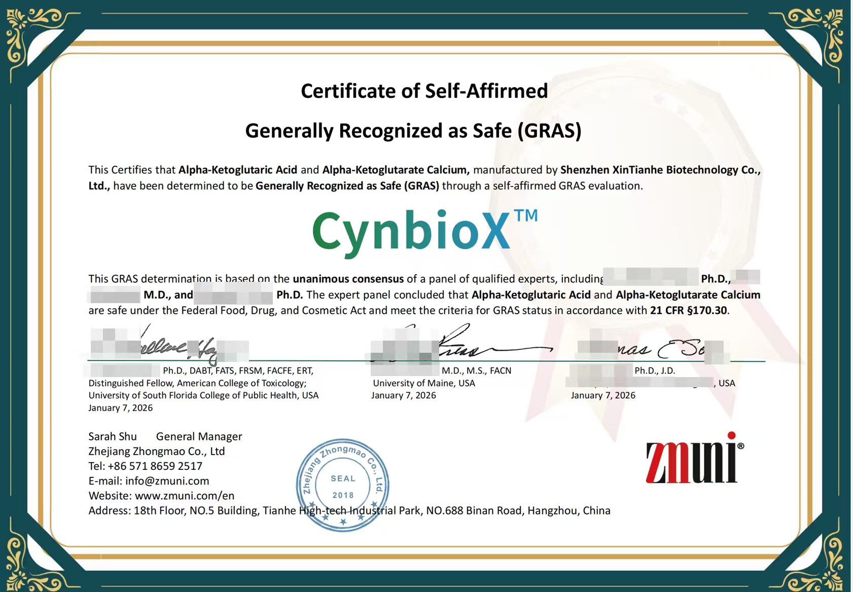 2026年1月7日,新天合生物旗下AKG、Ca-AKG产品顺利完成美国FDA GRAS准则的Self-GRAS科学评价并获批准,成为国内率先以发酵法通过GRAS权威认证的相关产品,正式获得美国市场准入资格。这一突破不仅开辟了国内相关产品工艺认证,也为企业进军全球营养健康市场迈出关键一步。