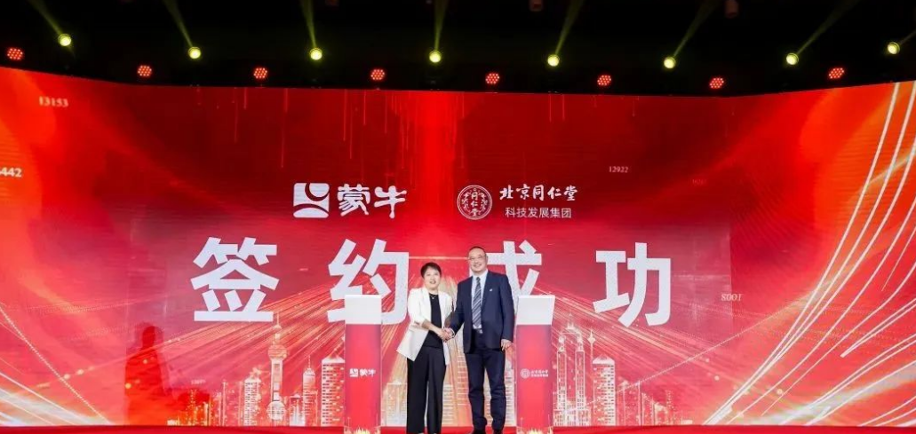 2月18日,蒙牛集团与北京同仁堂科技发展集团在广西南宁签署战略合作框架协议。