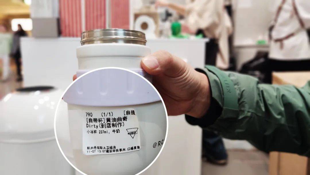 对于网上“拿多大的杯子都能装满”的说法,店员表示:“如果自带杯和原杯量差距不大,会装满,但如果差得太多,考虑到口感等原因,是无法装满的。如果顾客拿的杯子特别小,也会提前告知顾客可能不够装。”