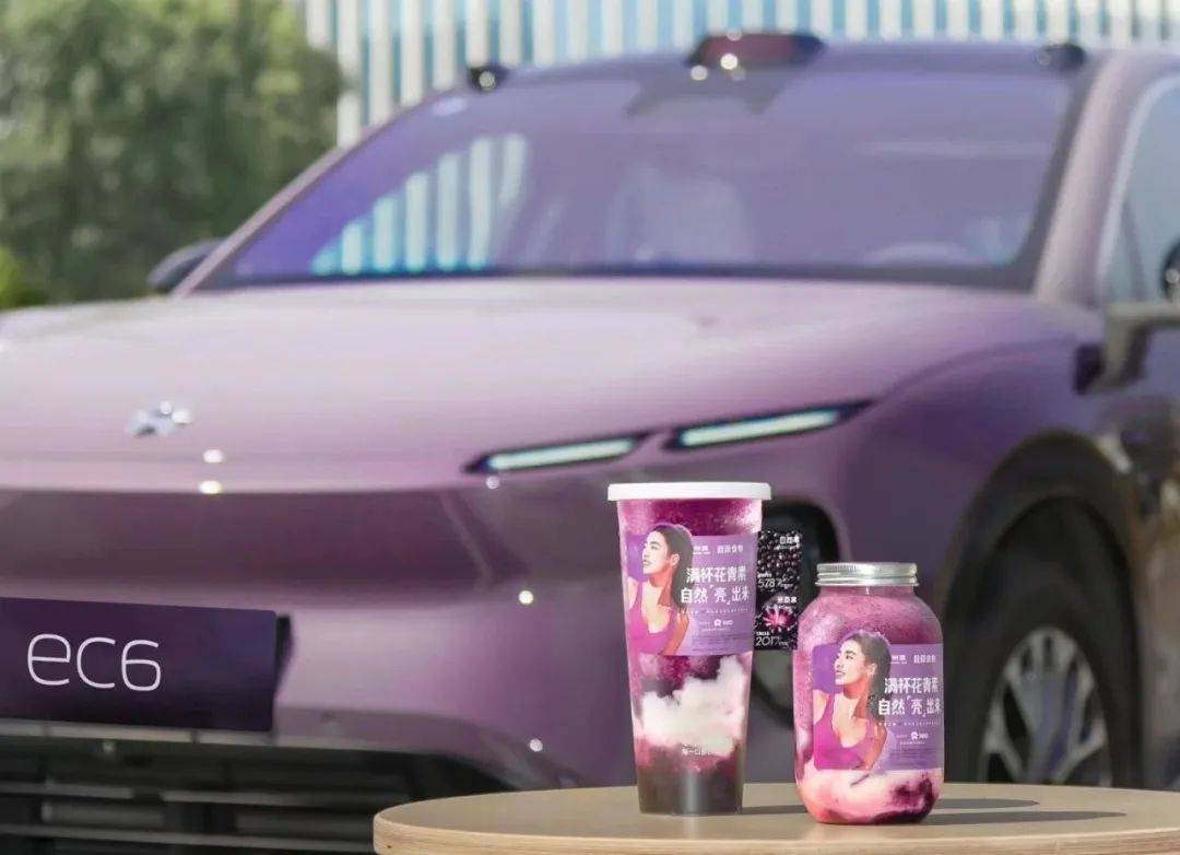 3月底,树夏联动汽车品牌蔚来推出限定饮品——巴西莓桑葚酸奶,使用黑桑葚、巴西莓、菠萝多种元素与酸奶搭配,中杯售价22元。