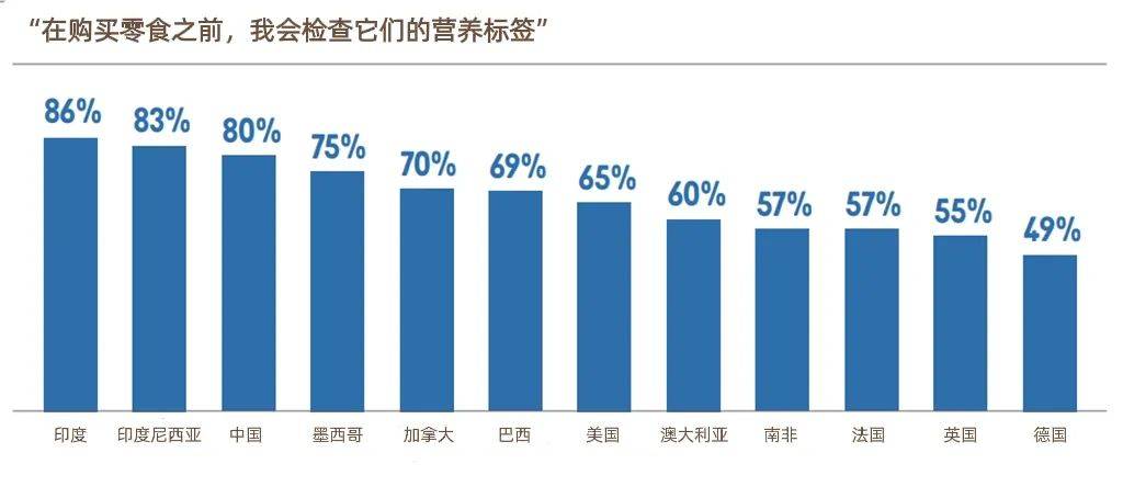 保持清醒的方法各种各样。61%的人会选择调整零食的分量,即在吃零食之前花时间把它们分好量,特别是千禧一代(69%)。68%的消费者在购买零食之前,还会检查包装上的营养标签。亿滋统计了不同国家的数据,其中,中国消费者中有检查标签习惯的占到了80%。这么做会让他们觉得掌握了更多的信息,具备一种对食物的“掌控感”。