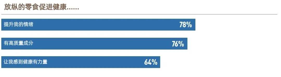 更有甚者,将放纵性的零食视为促进健康的营养品。78%的消费者认为这类零食可以提高情绪,76%的人认为其中含有优质成分,而64%的人认为吃这样的可以让人感觉变得更健康强壮。