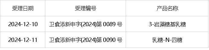 2种HMOs受理申报食品添加剂新品种