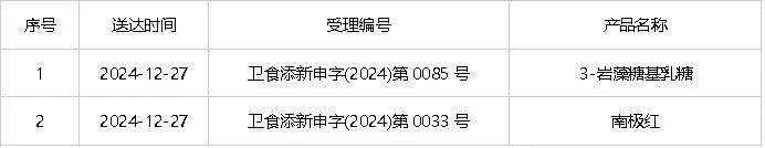 表:2024年12月27日食品添加剂新品种延期通知书信息送达
