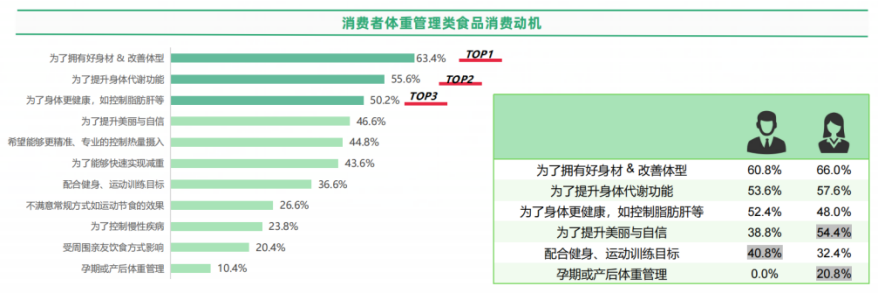 体重管理是健康不可或缺的一部分。据《2025年体重管理食品消费者洞察报告》数据提到【1】,好身材、体型管理和“提升美丽与自信”是消费者购买体重管理类产品的主要消费动机,这说明体重管理早已不是简单的"吃 与不吃",而是精确匹配生活状态的健康投资。“颜值”与“健康”才是消费者购买的核心动机。