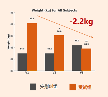 这项临床研究结果显示了,在不改变自身饮食和锻炼的情况下,71名受试者的平均体重管理成果。研究人员发现,其在体重管理上有突出的成果,这对维持健康的身体成分十分重要。
