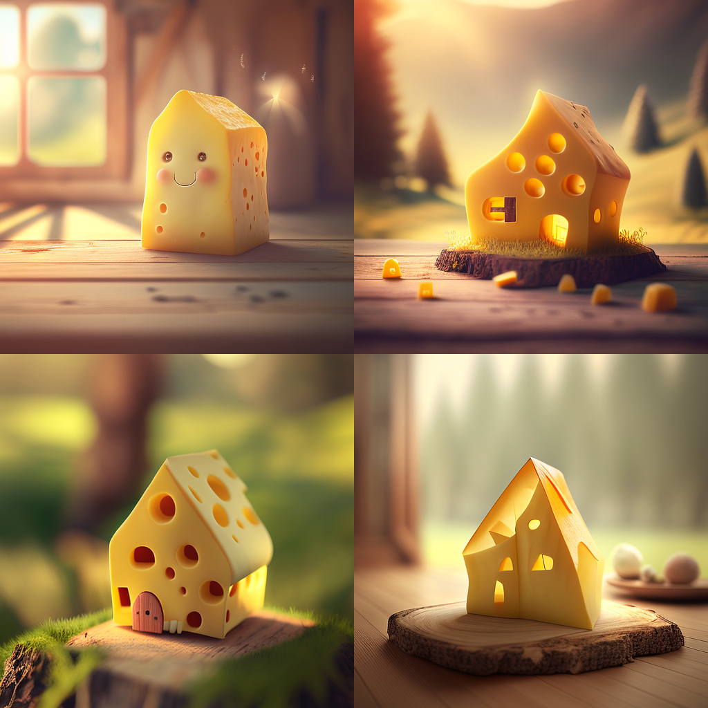 这一次带给我们最大惊喜的是奶酪,并不需要十分复杂的关键词,仅仅是限定形状与风格,再设定合适的光影,Midjourney对于奶酪的设计便大大超出了我们的预期。