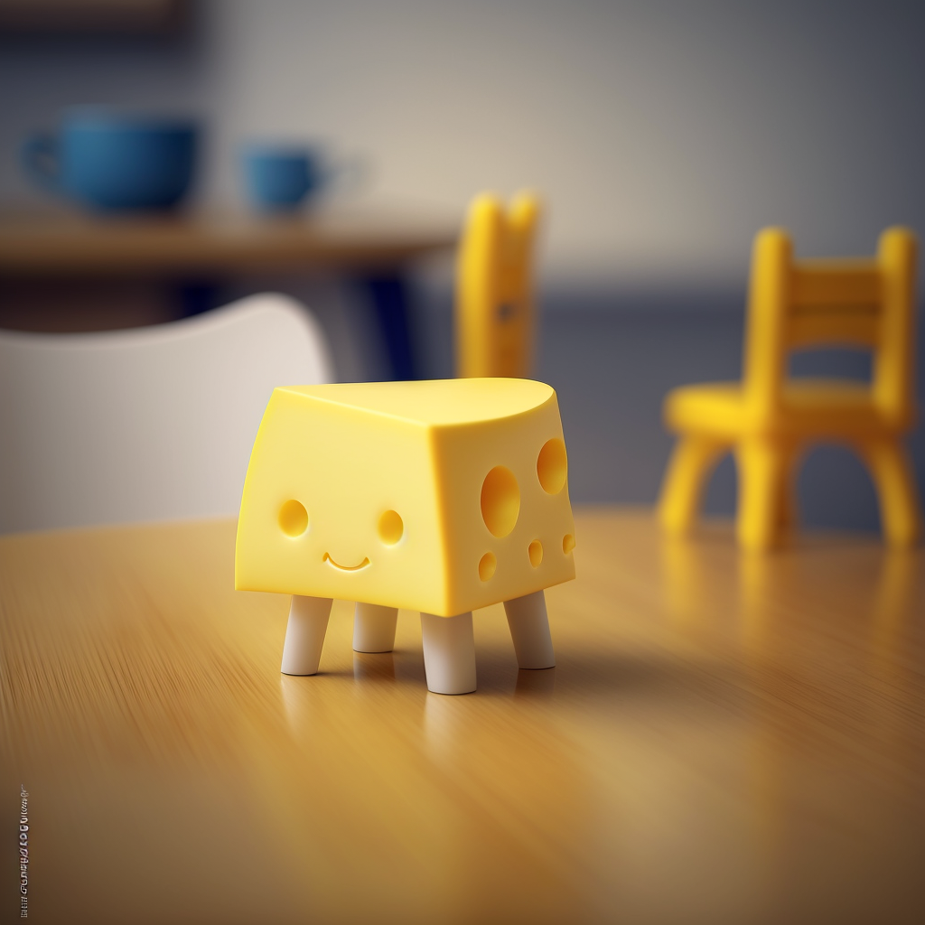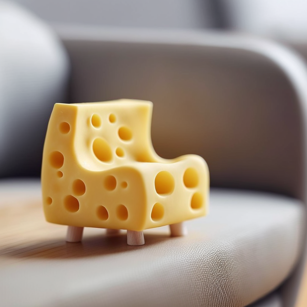 有了房子之后,我们将“家具”与奶酪结合,Midjourney延续前面的风格,继续生成了一系列可爱又可口的“家具”。