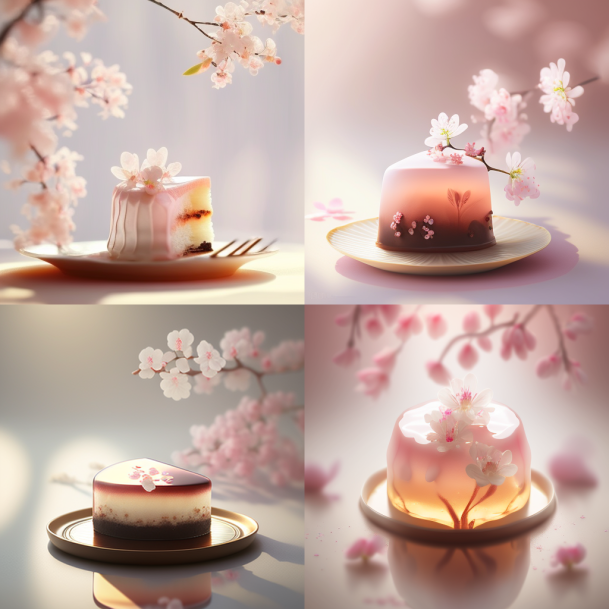 不管是什么花,对于Midjourney来说都不在话下。除了桂花和竹子之外,我们也尝试了樱花,让我们感受樱花带来的浪漫吧。