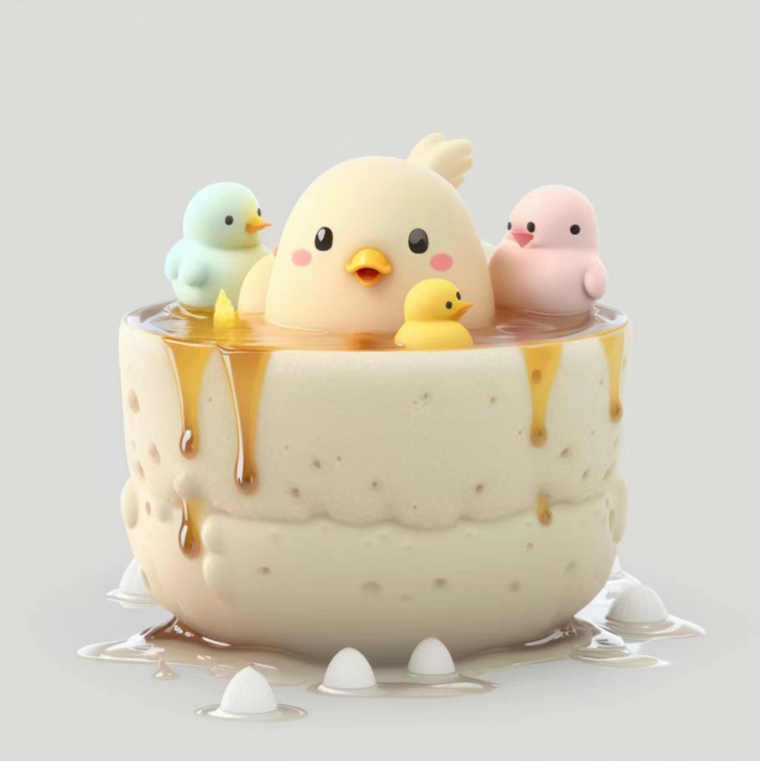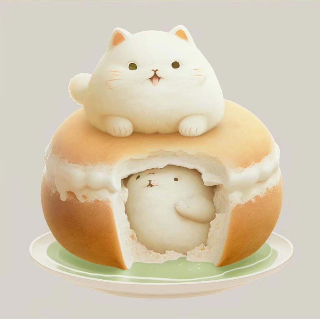 说到甜点,怎么能少了日式的呢?Midjourney巧妙地把萌宠、鸡蛋烧和铜锣烧结合起来,让这个甜品不仅能俘获我们的胃,还能俘获我们的心呀!