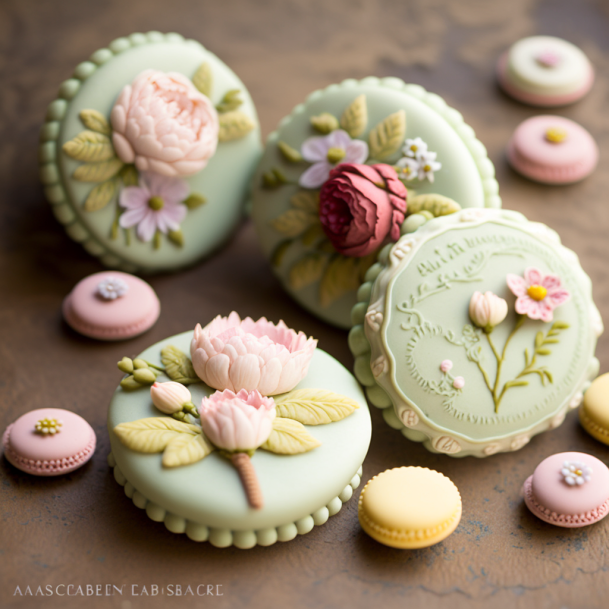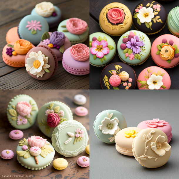 现在市面上见到的马卡龙大多造型较为简约。为了设计出不一样的马卡龙,我们将“春天”作为关键词输入。将各种花“放置”在马卡龙上,并且大多使用柔和的配色,带来视觉盛宴的同时也让我们感受到了春夏特有的生命力。