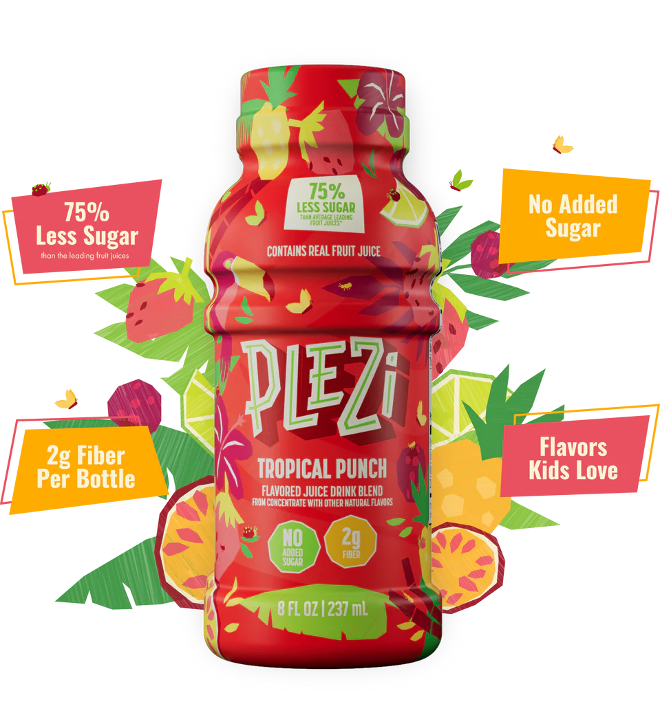 PLEZi Nutrition的第一款产品是一种名为PLEZi的儿童饮料。该饮料含糖量比平均水平低75%,不额外添加糖,而添加纤维和钾、镁、锌等营养素。这种饮料有酸苹果、爆汁蓝莓、粉碎橙子和热带宾治口味。目前4种口味在Target和Sprouts线下销售,线上销售渠道则由沃尔玛提供。