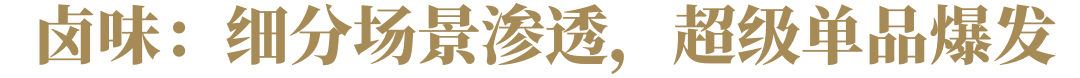 在另一方面,打造差异化、聚焦超级大单品、创造消费新场景的品牌迅速崛起。在卤味市场已有等传统巨头绝味、周黑鸭等的情况下,王小卤、舞爪、火号等新兴品牌凭借虎皮凤爪、兔头等超级大单品一战成名,离不开对细分场景的渗透与重塑与差异化的产品定位。