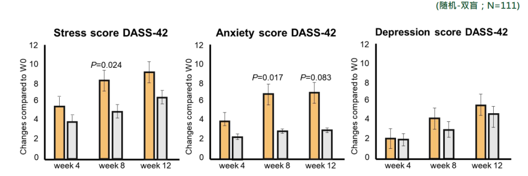 结论:与安慰剂相比,DR7早在第8周就降低了压力和焦虑;DR7主要通过增强5-羟色胺的神经递质途径发挥脑健康功能,维持多巴胺的平衡。