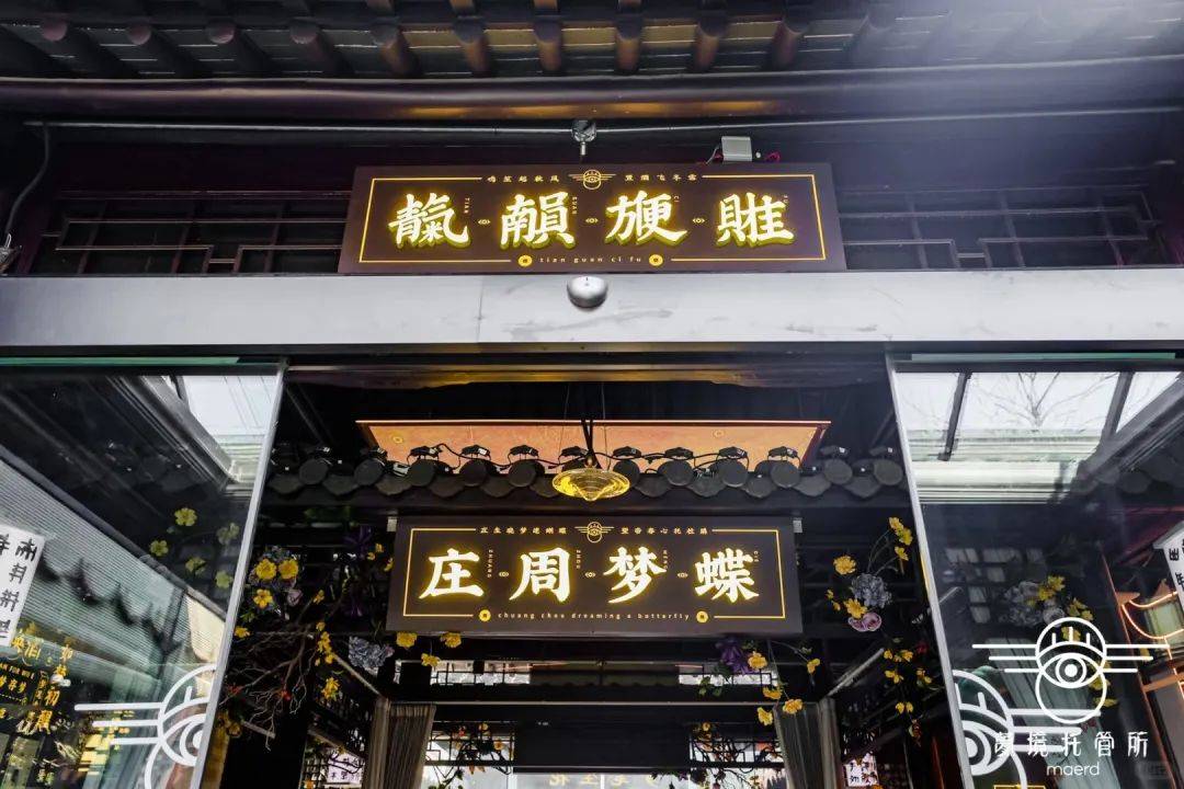 首先,整个门店是白墙青瓦、古色古香的建筑风格,配合黄色LED和老门东的古街氛围,让人仿佛进入了第三时空。