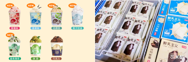 后者如可米酷,打出0蔗糖冰淇淋招牌,并将之视为“独门秘籍”。在2023年推出的新品鲜乳主义系列中,也将热量减少了30-40%,突出0蔗糖、轻负担。