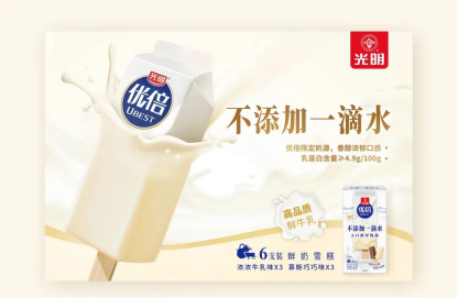 比如光明优倍推出的鲜奶雪糕就特地强调了奶源、乳蛋白含量以及“不添加一滴水”的特点。