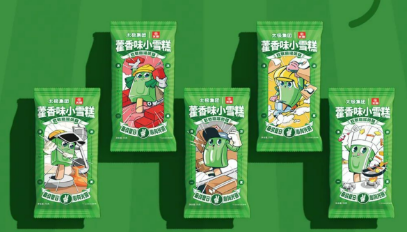 中式藿香咖啡火过一阵儿后,光明携手太极集团则推出了藿香味小雪糕。