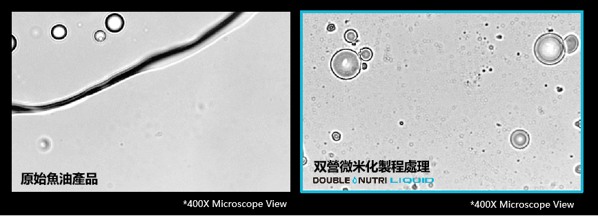 此外,依托于Double Nutri Liquid技术,这款鱼油产品中的有效成分被处理为了微米级的功能颗粒,显著提高了效力物在体内的生物利用率,吸收力大幅提升了550%。