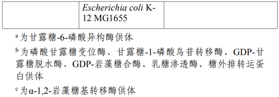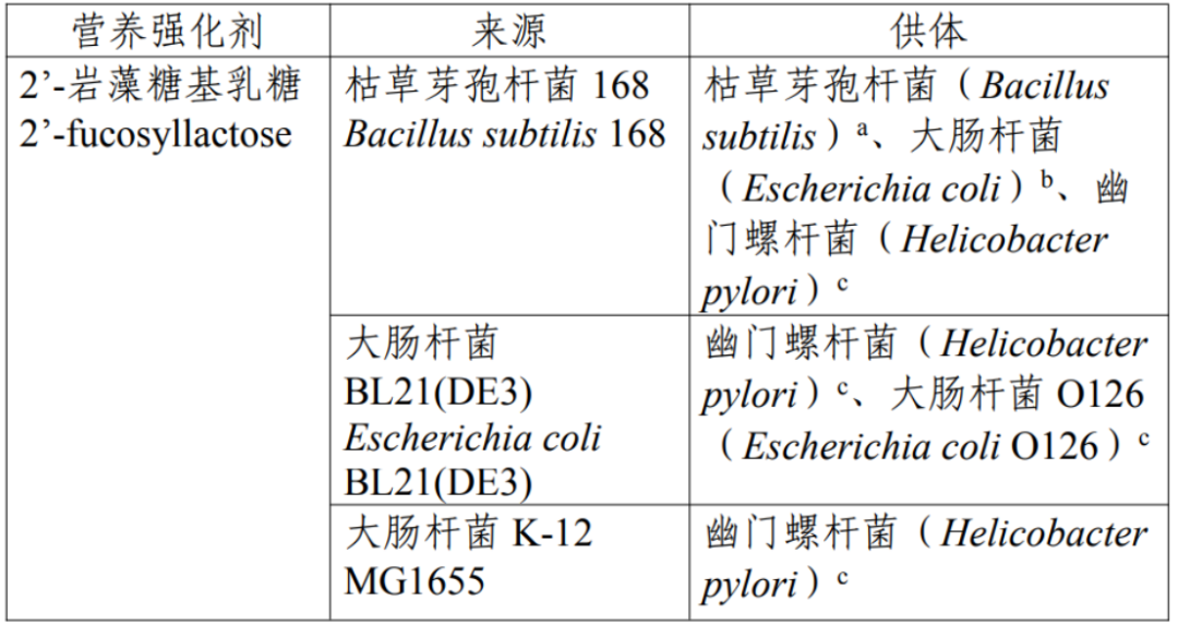 该物质的质量规格要求按照国家卫生健康委员会2023年第 8 号公告执行(附录 C 用于生产2’-岩藻糖基乳糖的生产菌信息除外),该营养强化剂新品种的生产菌信息见下表。