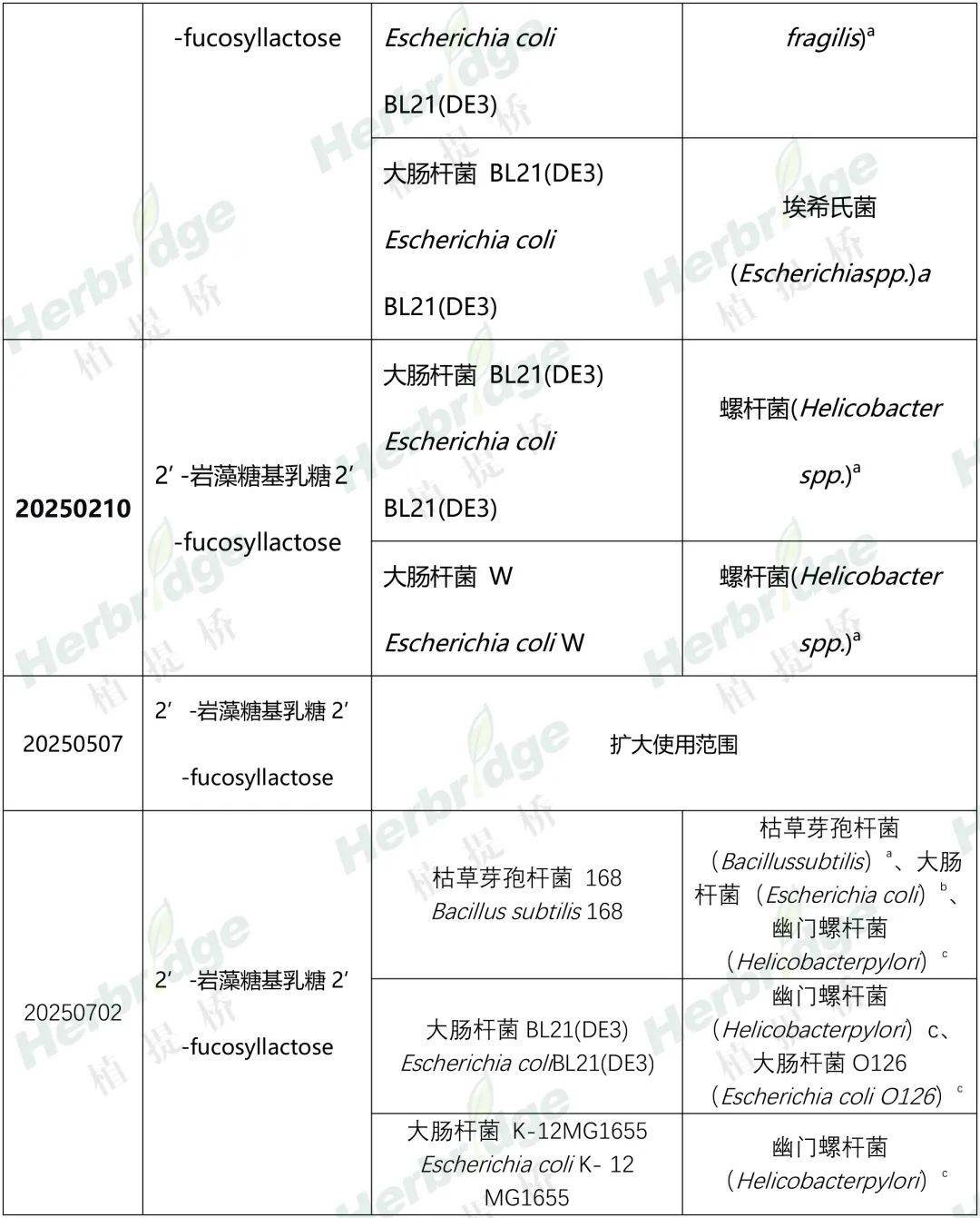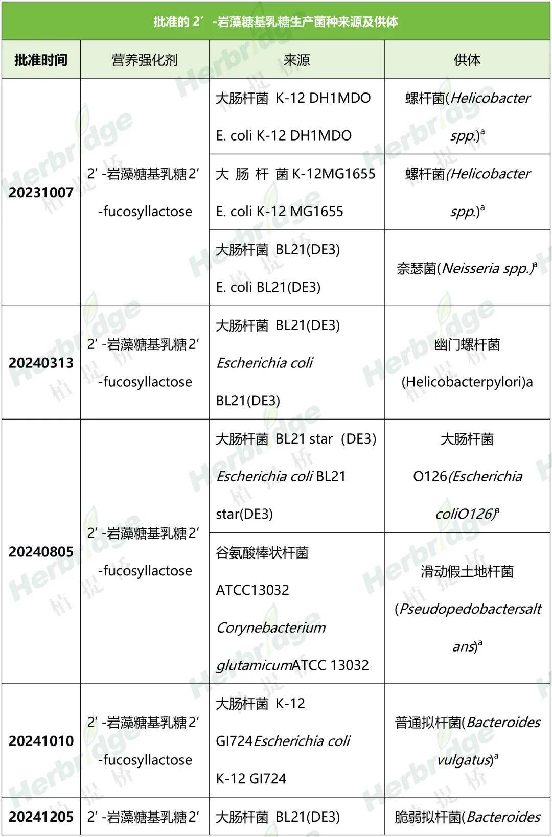 植提桥统计2’-岩藻糖基乳糖的批准批次和生产菌