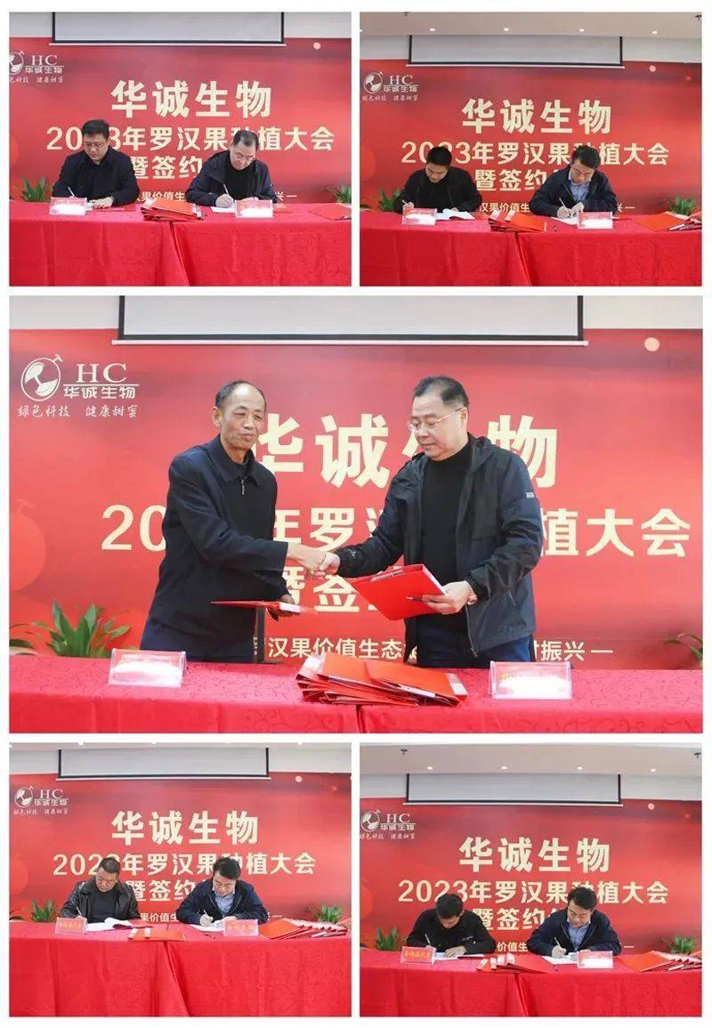 11月17日,华诚生物2023年第一批罗汉果种植大会暨签约仪式在华诚生物大会议厅举行。华诚生物董事长黄华学在公司总部接待了来自湘北、湘西、湘西南、湘南、江西宜春等地区合作社代表,并与第一批各合作社相关负责人进行了罗汉果种植协议签约;此次签约将打造罗汉果种植标杆示范区,聚焦乡村振兴战略,对当地农户增收和带动当地农业产业经济发展具有重要意义。