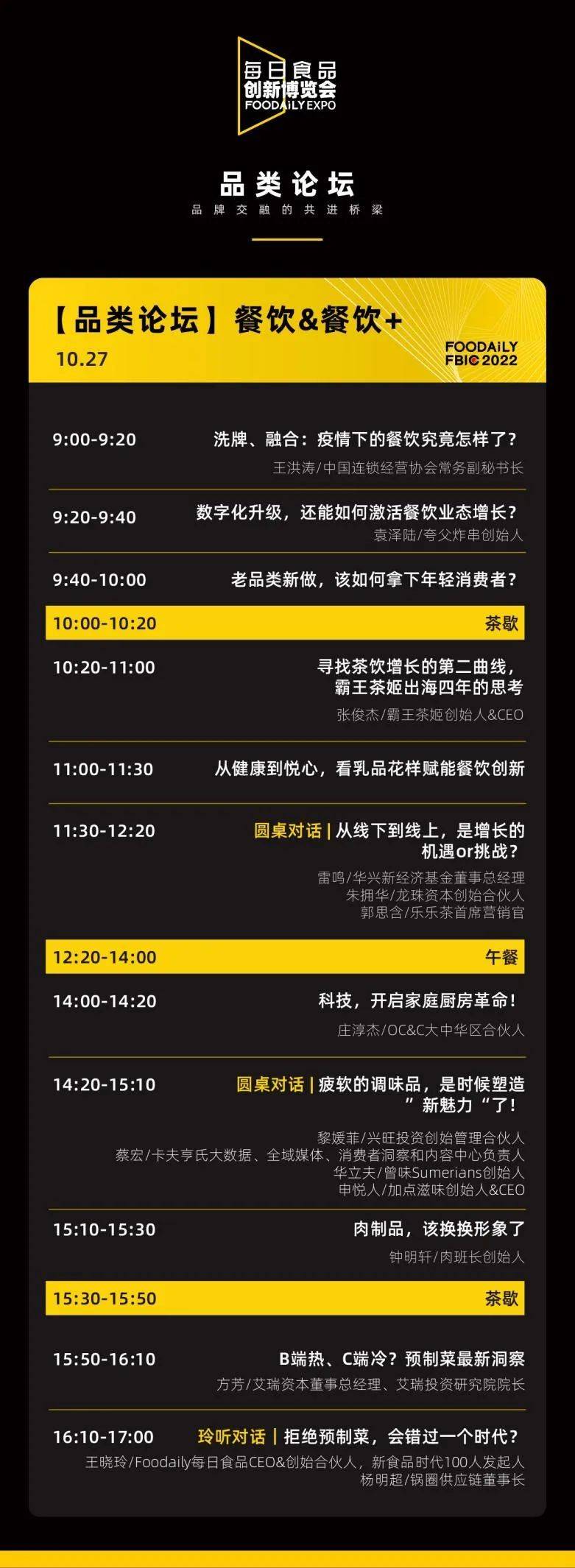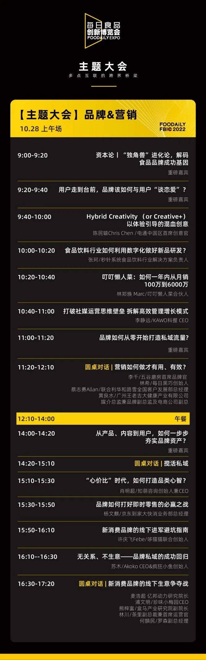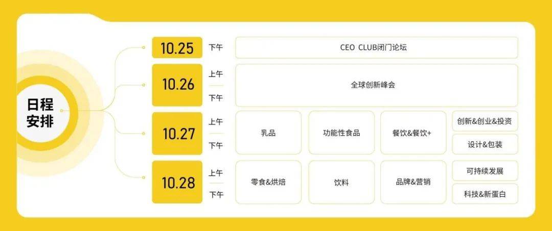 会议板块将以“品牌生态化”为核心,围绕“年轻化能力、数字化能力、品牌化能力、专业化能力”,通过“全球创新峰会、五大主题大会、五大品类论坛”,深度解析食品饮料创新。目前邀请到来自协会、智库、品牌、资本、渠道等不同领域的230+位大咖带来精彩分享,预计将有3000+行业中高阶产品决策人参会。