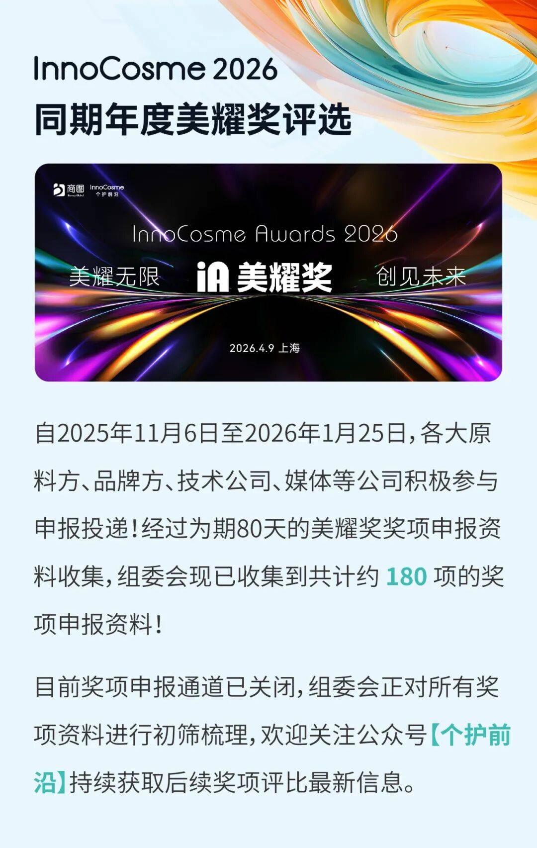 InnoCosme 2026第十届中国国际护肤技术论坛定档2026年4月9-10日上海!