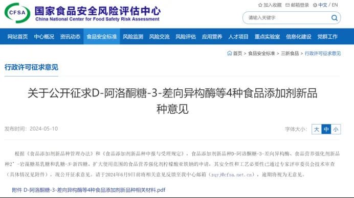 法规动态 | 公开征求D-阿洛酮糖-3-差向异构酶等3种食品添加剂新品种意见