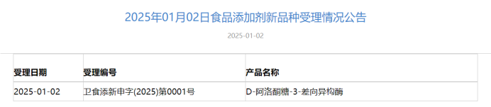 目前从2022年至今,D-阿洛酮糖-3-差向异构酶共受理了6次申报食品添加剂新品种,而且现在已经有三次获批。