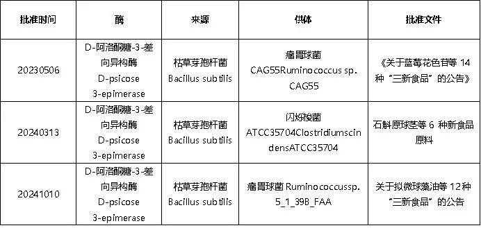 已经获批的D-阿洛酮糖-3-差向异构酶汇总
