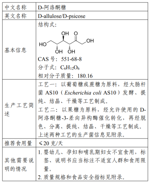 D-阿洛酮糖基本信息(2025年第4号公告)
