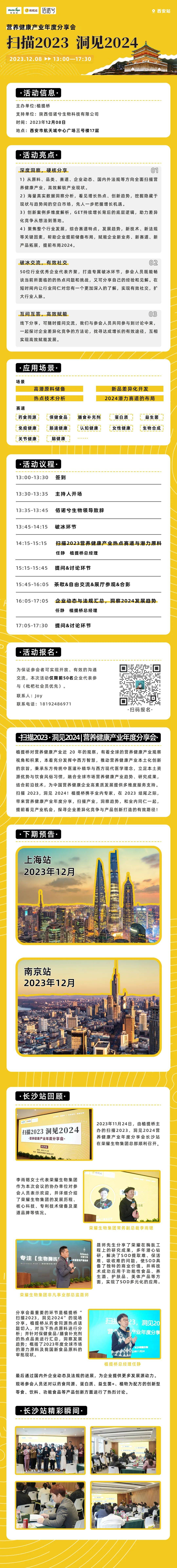 这对全产业链的企业来说,都是值得探讨的问题。基于此,植提桥启动了一场营养健康产业的“求知之旅”——【扫描2023 · 洞见2024 | 营养健康产业年度分享会】,期待通过全局化的视角,系统回顾营养健康产业这一年的趋势风向,探索驱动产业增长背后的底层逻辑,助力产业链上下游的企业布局2024。