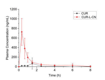 姜黄素大鼠PK吸收曲线