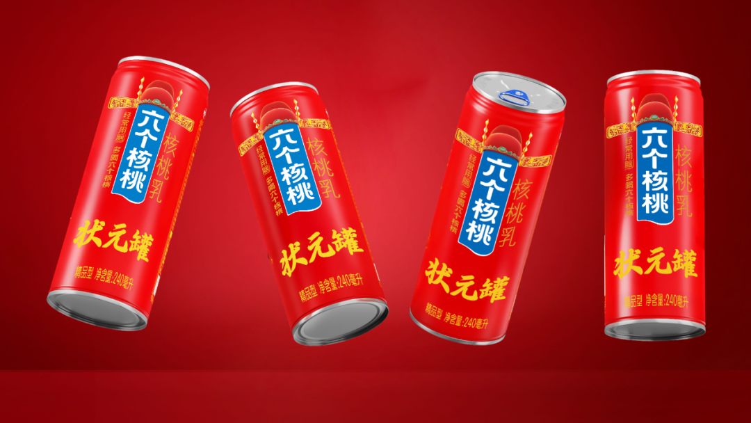 六个核桃“状元罐”通体以寓意吉祥和好运的红色为主色,并将象征着考生“天花板”的“状元”形象跃于包装之上,传递出对考生们金榜题名的美好期许。罐身上,“祝您拔得头筹、榜上有名、前程似锦” 等金色祝福语熠熠生辉,中国传统的状元文化与现代情感表达完美融合,赋予了这罐饮品浓厚的仪式感,从而巧妙实现六个核桃和受众的情感连接和品效合一。