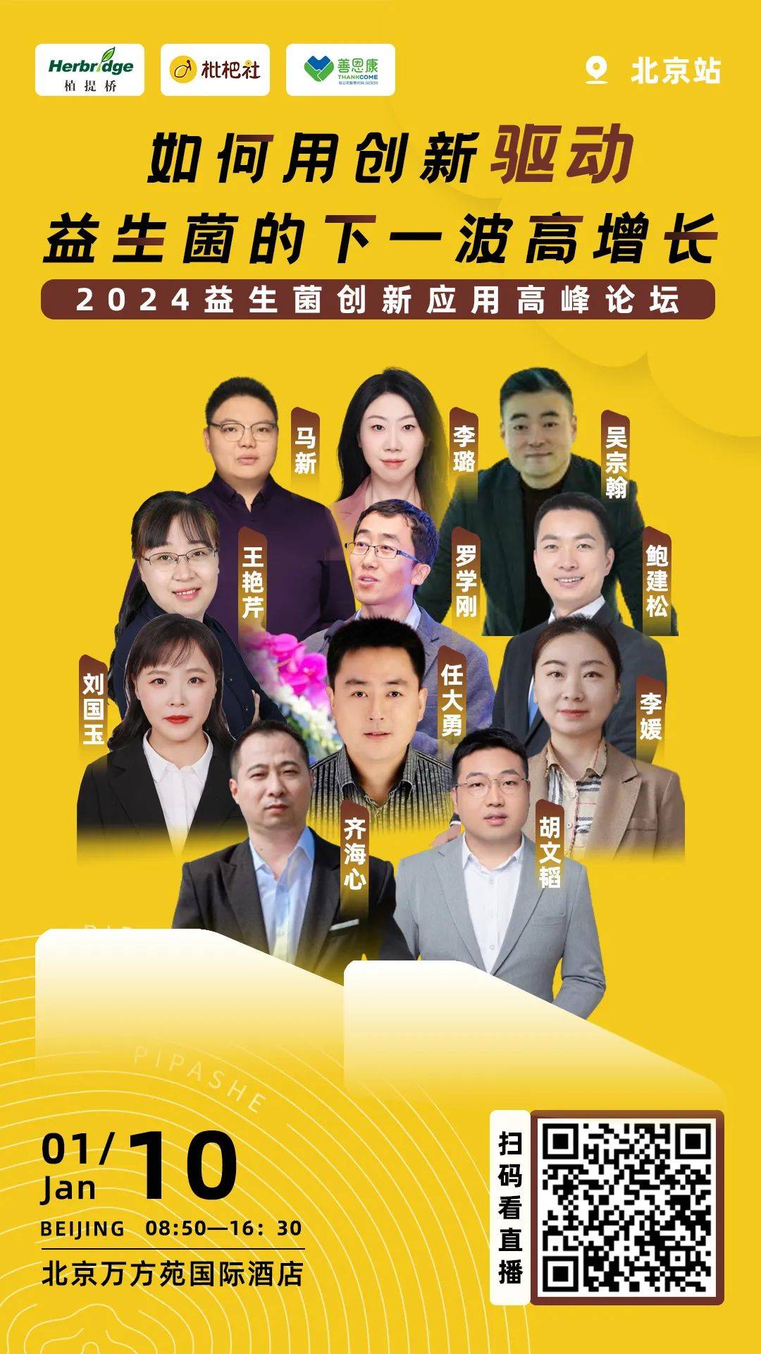 带着这些问题,植提桥联合善恩康于2024年1月10日在北京成功举办“如何用创新驱动益生菌的下一波高增长暨2024益生菌创新应用高峰论坛”,吸引了众多行业从业者的参与和关注。