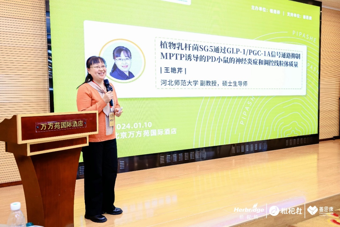 河北师范大学副教授、硕士生导师王艳芹博士向大家分享了“植物乳杆菌SG5通过GLP-1/PGC-1α信号通路影响MPTP诱导的PD小鼠的神经炎症和调控线粒体质量“相关内容,研究发现植物乳杆菌SG5能够调节帕金森小鼠的肠道菌群情况,增加结肠和血清中GLP-1的表达等,在帕金森方面有一定的潜力应用。