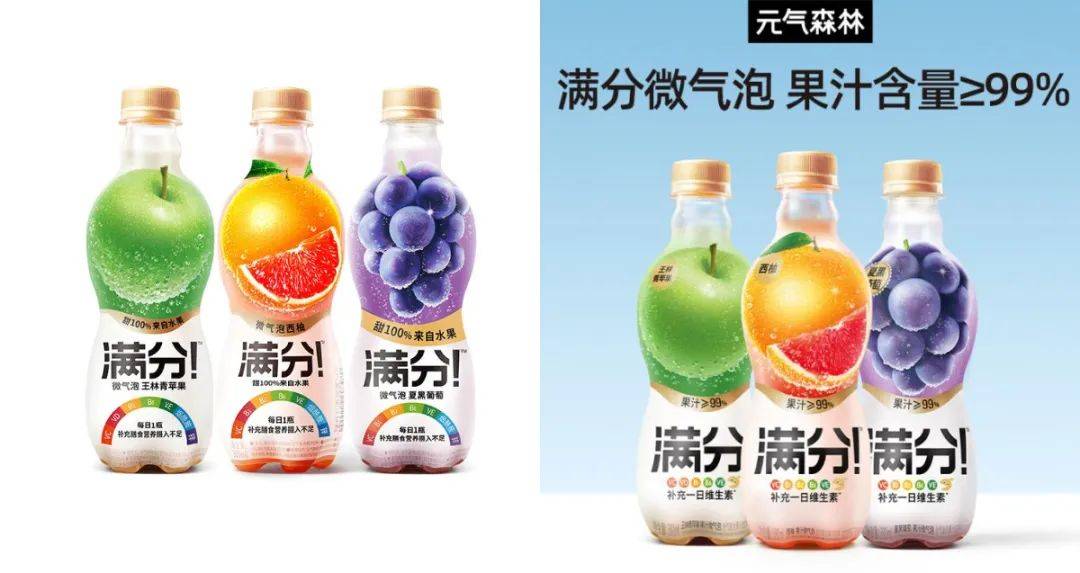 作为元气森林进军果汁线的第一款产品,满分在诞生之初被寄予厚望。元气森林在当时公开表示,在日本和美国主打“100%果汁+微气泡”的产品,均已取得了较好的市场反响。品牌认为满分的出现,能填补国内“100%果汁+微气泡”细分领域的空白。