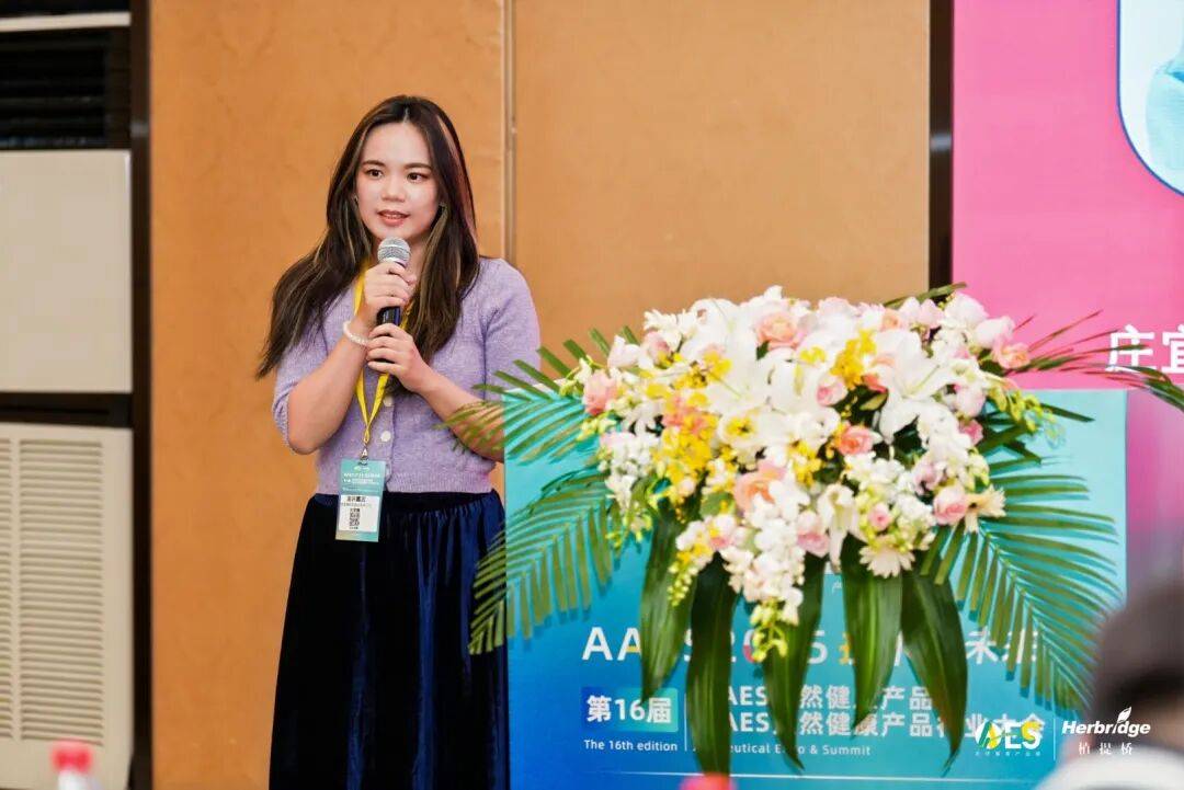 山东赫尔希胶囊有限公司技术工程师,宫玉昂分享《羟丙甲纤维素植物胶囊的跨界赋能》,许多活性成分(如益生菌、植物提取物)在胃酸的强酸性环境中易失活,导致口服后生物利用度大幅降低,而且传统胶囊壳存在溶解行为不稳定问题,针对以上挑战,赫尔希推出了两款功能侧重点不同的胶囊产品:抗酸胶囊、二代HPMC胶囊;抗酸胶囊:专注于“保护”,能将活性成分安全护送至肠道后再崩解释放。二代HPMC胶囊:专注于“释放”,它在不同pH介质(水、pH1.2、pH6.8等)中均能实现一致且快速的溶出,确保了内容物可靠、高效的递送。赫尔希的植物胶囊技术为解决活性成分口服递送难题提供了专业、可靠的载体方案,重新定义了功能性食品和药品在产品形态和功效实现上的可能性。