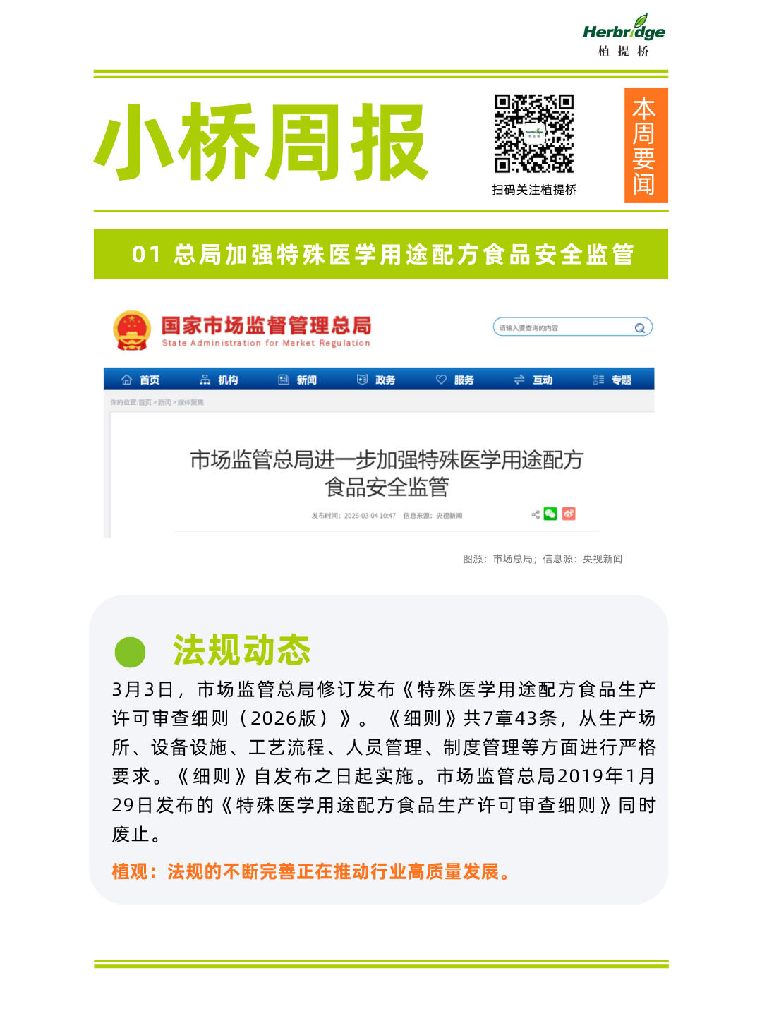 1、总局加强特殊医学用途配方食品安全监管